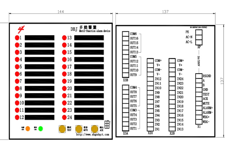 DBJ型多功能信號報警裝置(以下簡稱“裝置”)是適用于變電站、發電廠、風/光發電、船舶、油氣平臺、石油化工等系統中,是將以往系統中事故/預告信號、安防、巡檢、復歸等功能有機地結合在一起,進行集中信號處理的多功能綜合報警裝置。對于邊遠地區的小型機站可結合無線遠程傳輸裝置實現遠程報警監控.